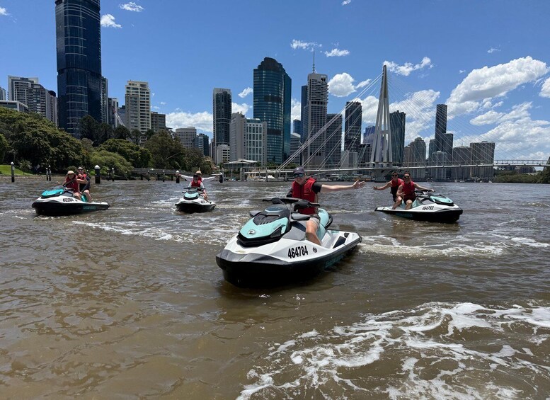 Other than an experience of a lifetime, you’ll see some of the most picturesque cityscapes Brisbane has to offer. Your guided ride traces the meandering Brisbane River from Breakfast Creek to South Bank and back, blending skyline views, heritage landmarks, and calm river reaches perfect for jet skiing. While on tour, keep an eye out for local wildlife such as cormorants, pelicans, rays, and—on lucky days—dolphins moving with the tide.