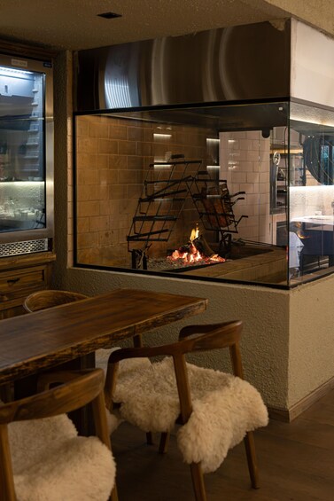 Upon entering, you'll find unique spaces like our wine cellar, where the journey begins, and an imposing cross-shaped grill in the centre of the room, reflecting the essence of Argentine fire. The atmosphere is intimate, warm, and carefully curated to offer a different and memorable experience.