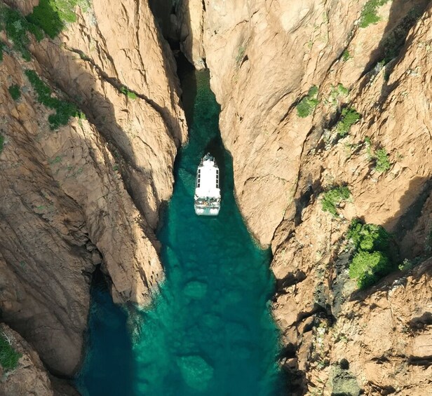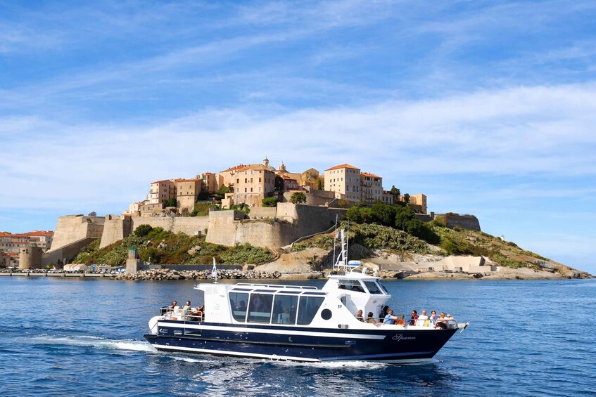 Tour departing from Calvi (total duration approximately 6 hours: outbound trip to Scandola approximately 1 hour 15 minutes + tour 1 hour 30 minutes + lunch stop approximately 1 hour 30 minutes + return trip from Girolata 1 hour 30 minutes)