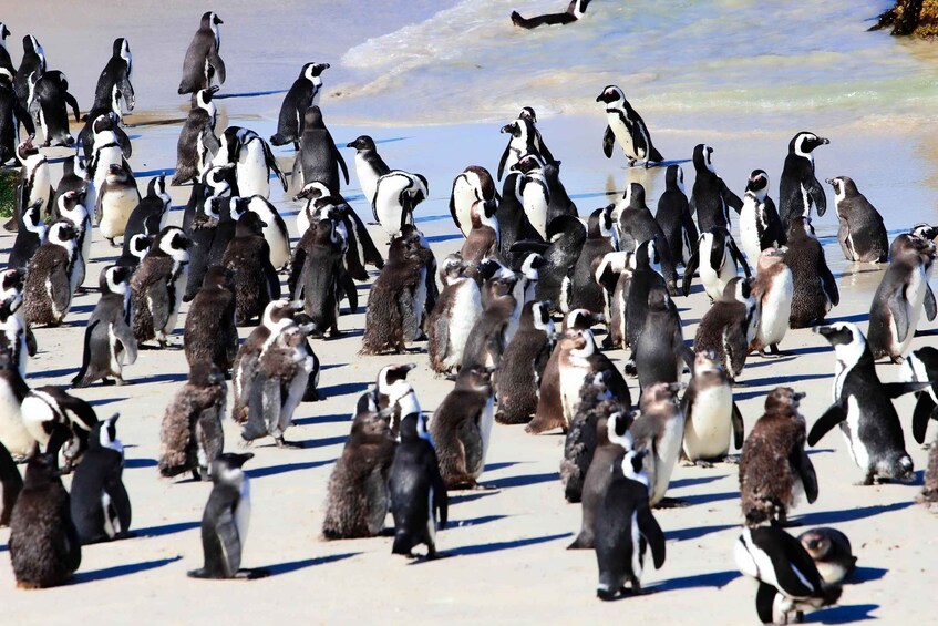 Finally, make your way to Boulders Beach, home to one of the only penguin colonies on the African continent. Here, you can get up close to the charismatic African penguins, who waddle and play on the sandy shores. Stroll along the boardwalks that weave through the dunes, providing an intimate look at these endearing creatures in their natural habitat. The penguins, with their distinctive black and white plumage and comical behaviour, are sure to leave a lasting impression on your Cape adventure.