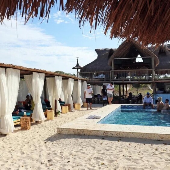 The Beach House Tamarindo in Cartagena is the perfect destination for a relaxing getaway. The tour begins with an exciting return boat ride, allowing you to enjoy the views of the Caribbean. Upon arrival, you are greeted with a refreshing welcome cocktail, marking the beginning of a day full of comfort and fun. The lounge beds are ideal for lounging in the sun, while the pool and freshwater showers offer refreshing relief from the heat.