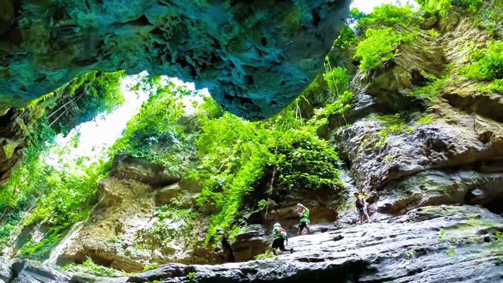 Next, trade fins for adrenaline at the world-famous Kawasan Falls canyoneering adventure. Trek through lush jungle trails as the sound of rushing water grows louder, signaling the thrills ahead. With expert guides, leap from cliffs into crystal-clear pools, slide down natural water chutes, and swim through emerald canyons carved by nature. Every jump rewards you with breathtaking views of cascading waterfalls framed by towering cliffs draped in tropical greenery.