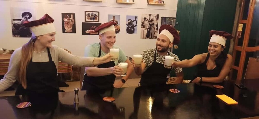 A professional chef and guide. a cooking workshop , fresh ingredients , kitchen and bar utensils, kitchen aprons, includes water, a cocktail, a starter dish and a main course. if necessary we offer natural medicine for altitude sickness and digestive teas.