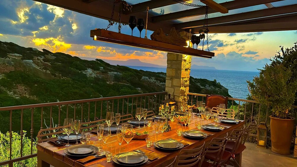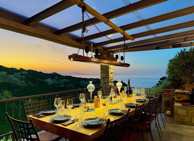 Embark on an exclusive wine and culinary journey amidst the majestic views of Zourida Gorge. Enjoy a wine tasting featuring eight Greek wines of the highest quality paired with a eight-course Cretan feast. Learn about local winemaking and traditional cooking from seasoned experts in a small group setting of only 12 guests. Immerse yourself in Cretan culture while soaking in the breathtaking natural beauty of the gorge, creating unforgettable memories against this stunning backdrop.