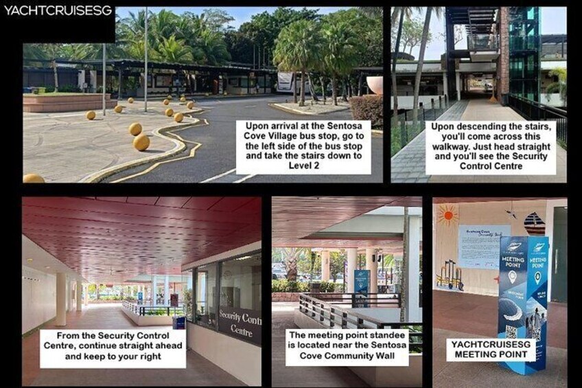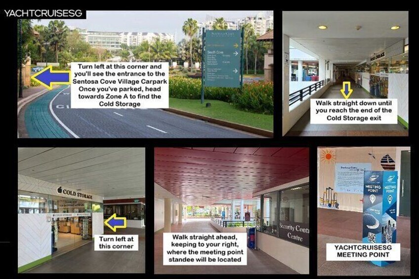 - The meeting point is located next to 7-Eleven, in front of the Cold Storage Main Entrance on Level 2 of Sentosa Cove Arrival Plaza Address: 1 Cove Avenue Singapore 098537