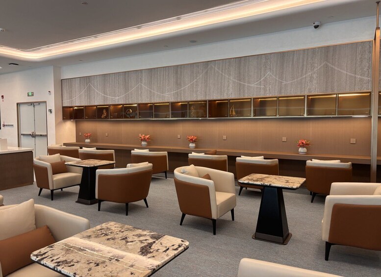 Relax in comfort with free Wi-Fi, meals, snacks, non-alcoholic drinks, buggy service, and flight updates. Choose this lounge if you're flying from Terminal 1 (Domestic Departure).