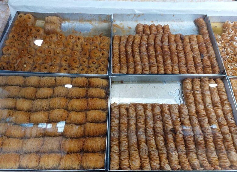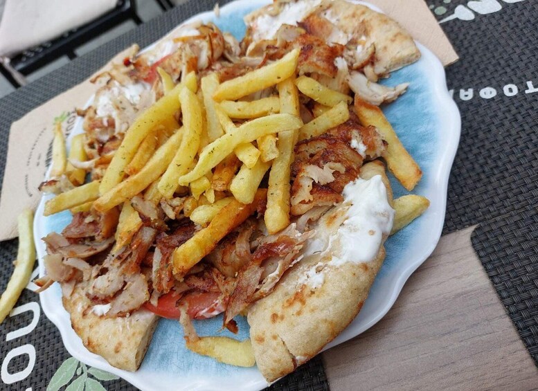 We start at the Clock Tower, where we taste a local favourite, bougatsa (a pastry, sweet or savoury), particularly popular as a pick-me-up in the morning. Then we’ll be having our first bite of Ioannina history with a fine view of the southeast of Ioannina. After that break we will be enjoying a platter of local cheeses. We will accompany the cheese with the local aperitif, tsipouro. Next door we’ll be tasting the Greek street food par excellence : gyros (grilled meat cut thin with tzatziki sauce, on a pita). Yummy…We continue for some local street food : lamb souvlaki (kebab, i.e. wooden skewers threaded with cubes of meat that are marinated and then cooked over charcoal). Then we’ll taste food combining local ingredients and recipes in a new form. At the end we’ll savour the local dessert : siropiasta (sweets made with thin leaves of pastry nuts over which a syrup, lemon and water is drizzled, after baking)