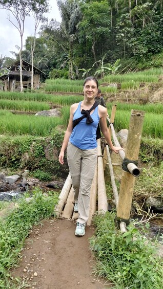 • Hike through lush rice fields and farms to a stunning waterfall