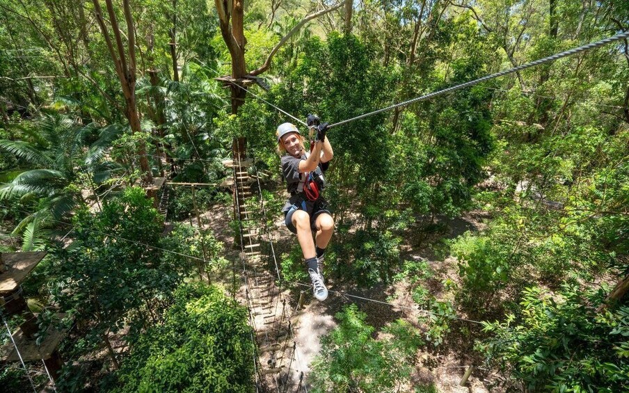 In dense rainforest less than 200m from Currumbin Beach, you’ll be high in the sky (over 20m!) pushing your mind and body to jump, climb and pull yourself through more than 100+ challenges of varying difficulties, along with 14 absolutely epic ziplines.