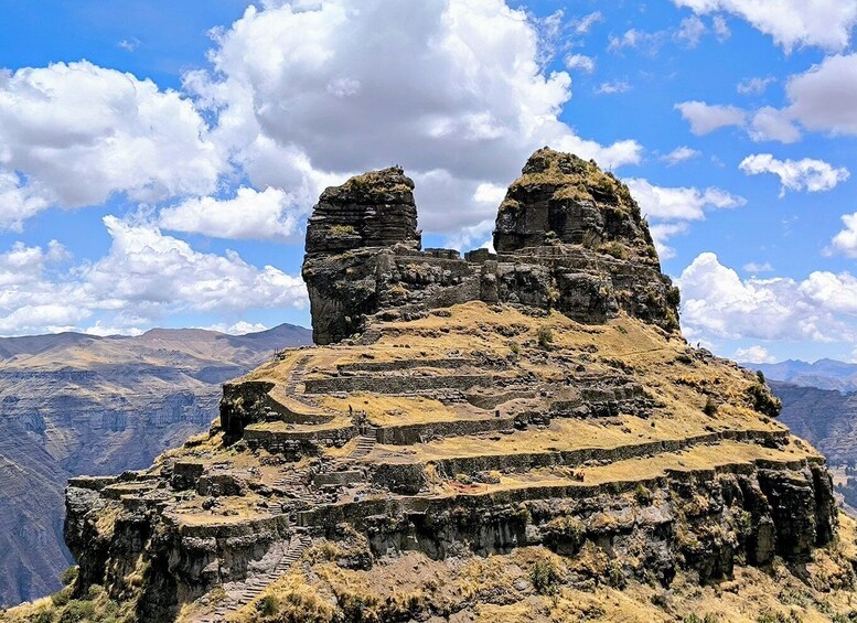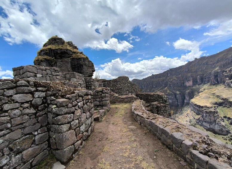 Our adventure starts early in the morning from the city of Cusco. We pick you up from your hotel or place you specify. After a brief introduction and information from our tour guide, we begin our journey for approximately two hours south of the city to the town of Cusipata, where we will stop at the restaurant to enjoy a buffet breakfast with local products. Continuing with our adventure we will travel for two more hours until we reach the community of Santa Lucia. On the way we will be able to appreciate impressive views of lakes and mountains that are part of the Andes of Cusco. Arrived at the point begins our journey on foot for about 1 hour to reach the impressive archaeological site of waqrapukara (fortress in the form of horns). There we will appreciate the beauty of the place, the wonderful Inca construction at the foot of a canyon located at an altitude of 4300 metres above sea level. After exploring the place, we will return by the same road by foot and car to the place of cusipata for a buffet lunch and return to the city of Cusco.