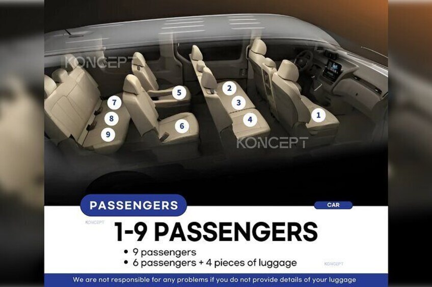 • Pick up & Drop off service (hotel name and address required when you book)
