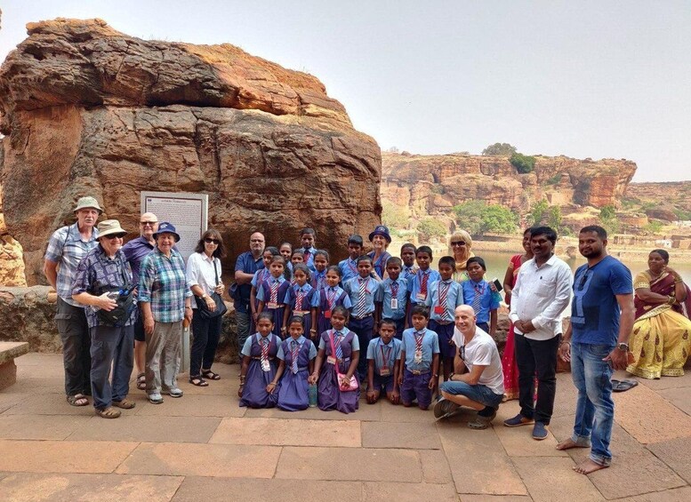 At 8AM we drive out of Hampi for 3 hours to the erstwhile capital of the Chalukya Kings, Badami. Located in a ravine at the foot of red sandstone hills Badami looks mesmerising surrounded by the Agastya lake. The cave temples are made of made of red sandstone and feature a hall with numerous pillars and a square shaped sanctum. Paintings cover the ceiling. A must look out is the pose of Lord Shiva and his consort Parvathi with a coiled serpent. An 18 armed lord Nataraja in 81 dancing poses is the other item of interest. Badami is also famous for its inscriptions. An important inscription to look out for would be the first Sanskrit inscription in old Kannada script, on a hillock dating back to 543 CE.