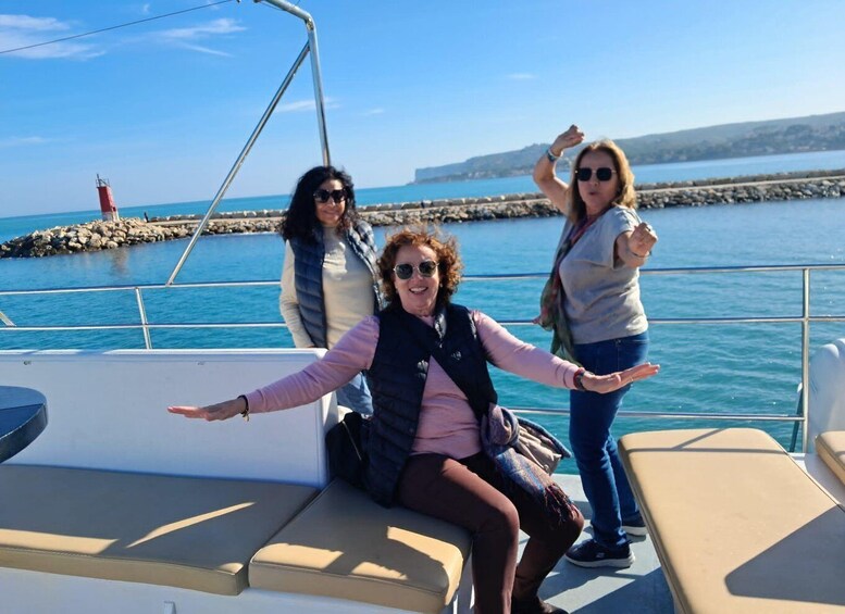 Denia: Cova tallada Catamaran Trip w/ Mussel Tasting & Wine