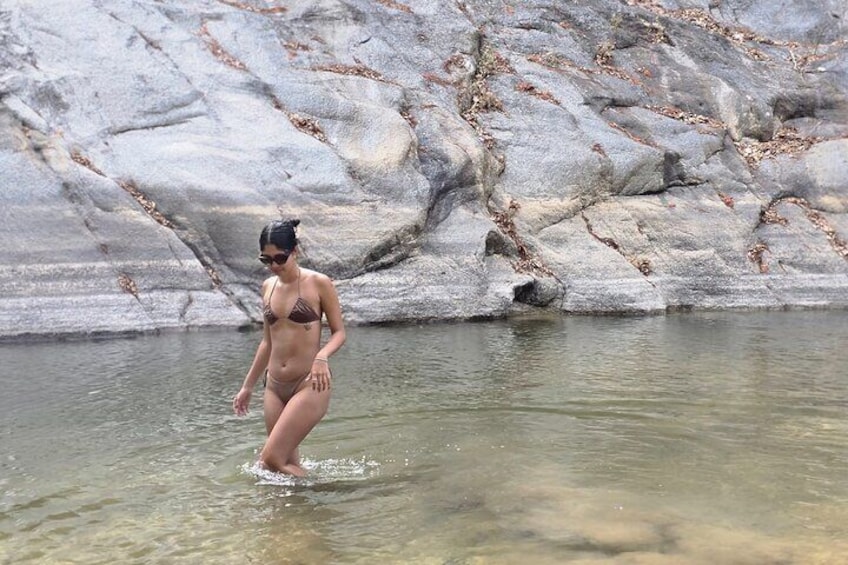 Discover El Polvorín, a hidden oasis in the Tomatlán River, surrounded by lush jungle and rich wildlife. Spot colourful macaws, exotic birds, and even playful otters as you swim in crystal-clear waters, jump from rocks, or relax on a sandy area that feels like a private beach.