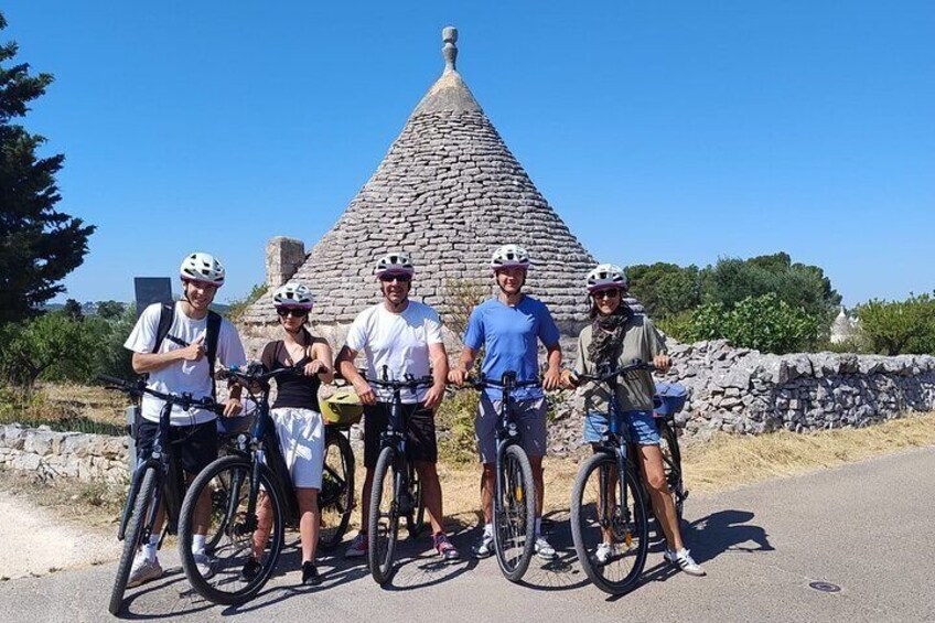 This easy e-bike tour of about 30 km allows us to discover the enchanting countryside of the Itria Valley, a unique place in the world for the presence of Trulli and endless dry stone walls between the municipalities of Martina Franca, Cisternino and Locorotondo. We start from Martina Franca and leaving the village we will travel along the most remote sheep tracks typical of the Itria Valley, we will reach the "Aqueduct Cycle Route" and we will have the opportunity to observe the typical rural life through the typical districts of the Itria Valley. The tour ends with a guided tour of one of the most important wine cellars in the heart of Valle d'Itria: the visit includes the vineyards, the wine production facilities and the tasting. After about 3.5 hours, return to the ebike Puglia headquarters. Other things to keep in mind. We do not recommend the tour for those who suffer from back pain, those who are pregnant and those who have severe cardiovascular diseases. Minors aged 14 and over accompanied by 1 adult are admitted.'