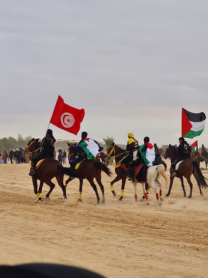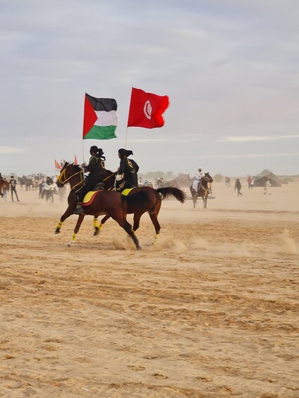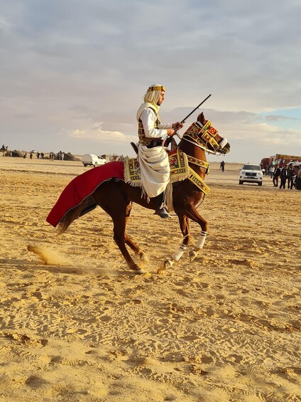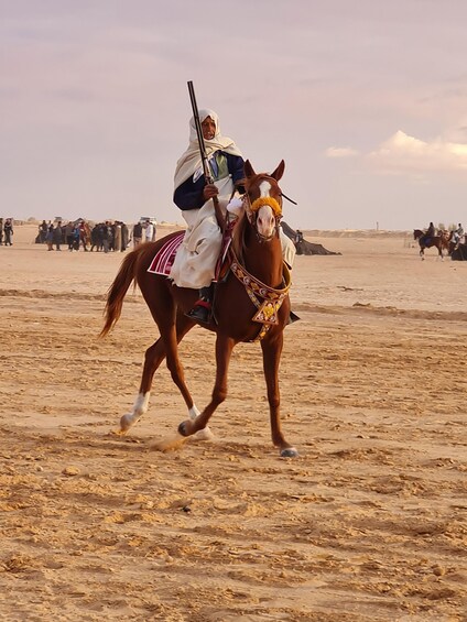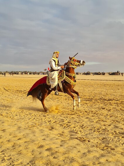 Riders in traditional clothes, aerobatic and gunpowder shooting demonstrations, folk dances, and songs from southern Tunisia create a magical moment, full of emotion and authenticity.
