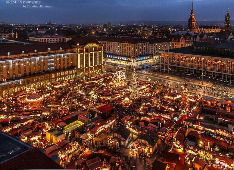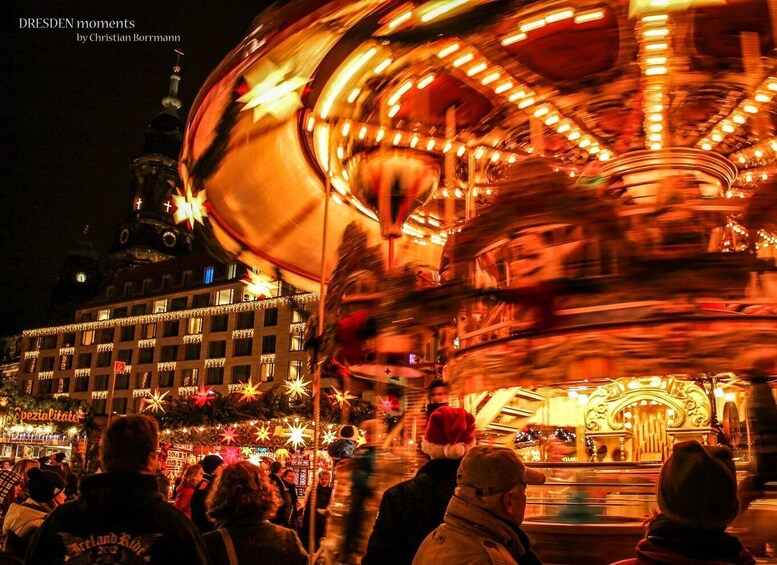 Experience the colourful hustle and bustle of the Dresden Christmas markets! See the most beautiful places in Old Town and learn about Dresden Stollen, Pflaumentoffel (dried fruit figurines), and Ore Mountain woodcarvings while surrounded by enticing scents and sparkling lights.