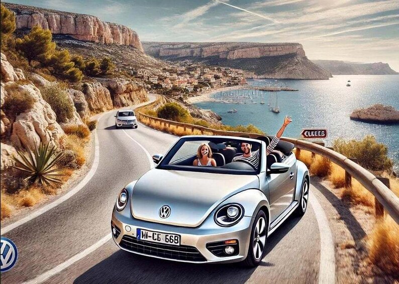 Drive a Beetle automatic and follow your guide along the coast of Marseille to take in the view of the sea, mountains, and rivers. Explore the famous Route des Crêtes, ( hightest road near mediterranee coast) and marvel at the Bay of La Ciotat from a high point. Finish up to the panoramic view of the calanque of Figueroles in La Ciotat painted by Pablo Picasso.