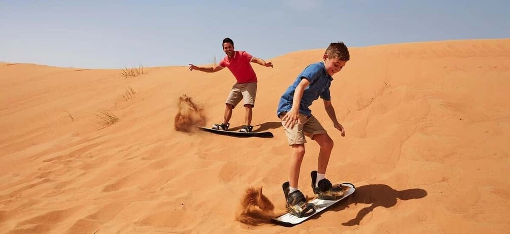 • Glide down steep red dunes and enjoy a thrilling sandboarding experience