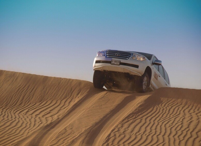 Your journey begins with an exciting dune bashing session — a thrilling off-road ride over the golden dunes in a comfortable 4x4 vehicle. Often compared to a real-life roller coaster, this adrenaline-pumping experience will give you a taste of the desert’s wild beauty.