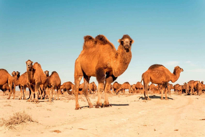 2 - Cross the Khorezm oasis and the Amu Darya River: discover the power of the Amu Darya, the mythical river that allowed one of the oldest civilisations in Central Asia to flourish in the heart of the desert. Be amazed by the sight of camel caravans grazing peacefully along the sand dunes.