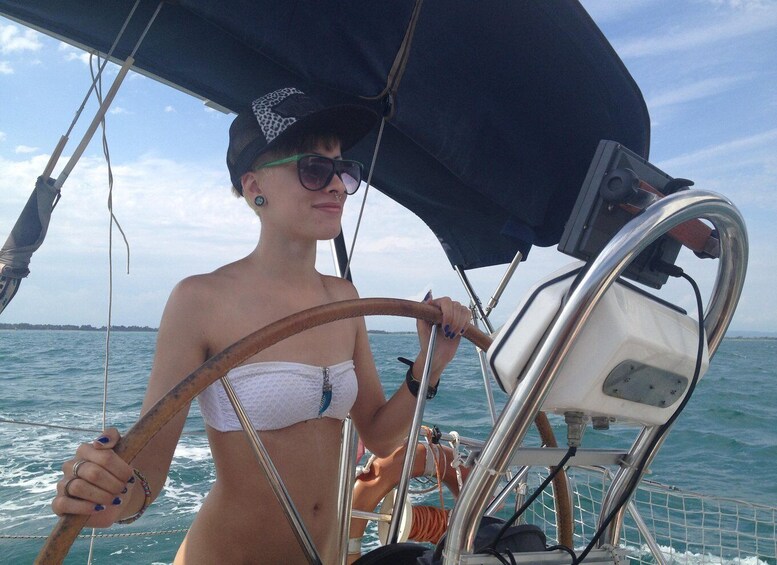 During the first half an hour, I will instruct you on the basics of sailing and give you the necessary notions for safety on board. During the navigation you will live the experience of a crew, alternating during the sail, and you will learn how to exploit the wind with brief practical and theoretical explanations. Pickup point could be different from the boat location depending by the mooring availability.