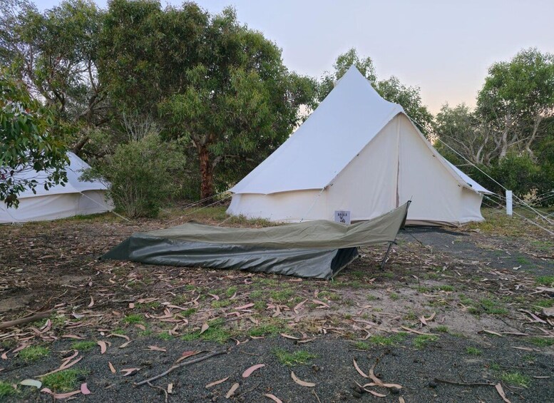 Head to camp for the evening and end the day with an Aussie BBQ (a communal affair) before sitting out under the stars for a wonderful social occasion. Our accommodation is comfortable Bell tents in a beautiful setting with shared (Max 4) Bell tents with generously sized beds. OR upgrade to private sleeping bell tents or a campsite motel room. For the adventurous, climb into a swag and sleep under the stars.