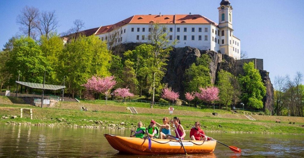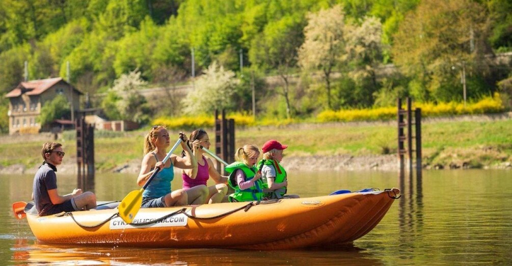Explore the Elbe River on a self-guided rafting trip from Děčín to Schmilka. Admire the scenic views of the Bohemian Switzerland National Park as you paddle down the river. Choose to add a bike rental or return by train.