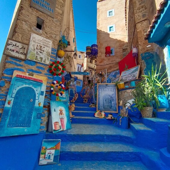 • Arrival in Chefchaouen(4hours): We'll drop you off at the entrance of the city, known as Bab Sour. You'll have approximately 4 hours of free time to explore the enchanting blue pearl of Morocco at your own pace. Wander through the charming streets, shop for local crafts, or simply relax and soak up the unique ambiance.