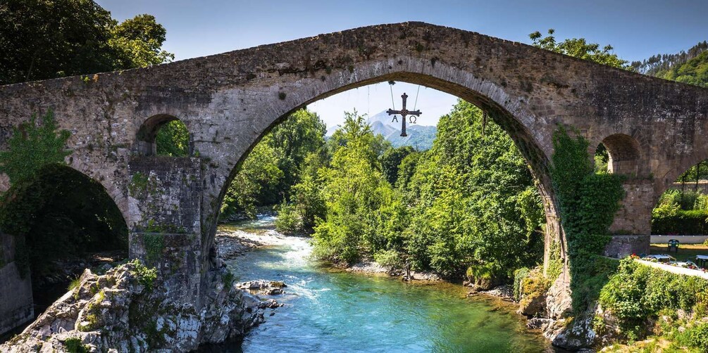 Continue your tour in the village Cangas de Onís. Here, take your pick of a variety of Asturian dishes and sip on a “culine” of cider. Afterwards, wander the cobbled streets, visit the famous Roman bridge that spans the mountain-fed Sella River, and see the bell tower of the Church of Santa María.