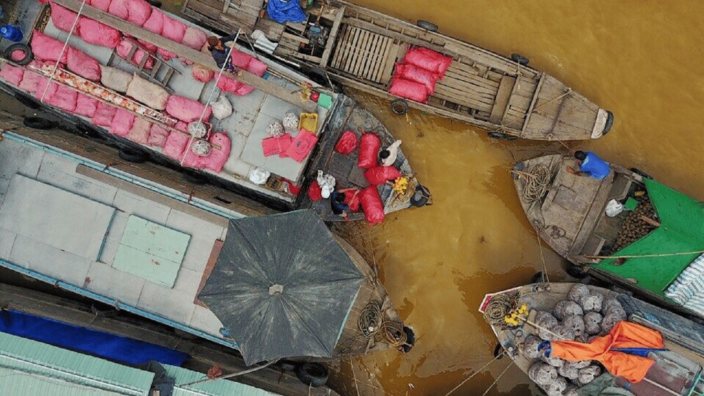 After the special Mekong lunch, we transfer to a smaller rowing boat allowing us to get deeper into the smaller canals of the Delta to get back to our big boat. The motor boat moves slowly along the river banks with floating fish farms then returns to My Tho for the journey back to Ho Chi Minh City.