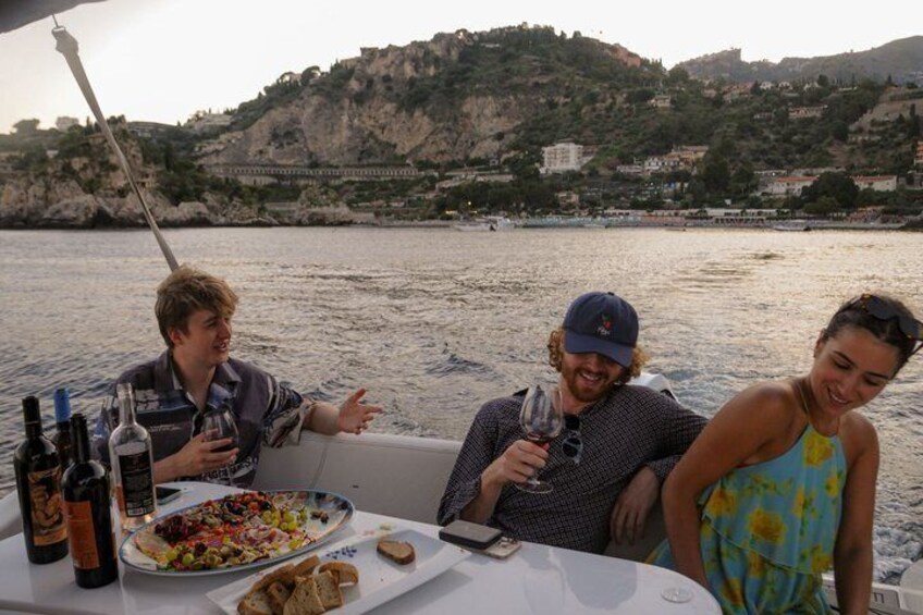From Isola Bella Beach Sunset Wine Tasting over Taormina Coast