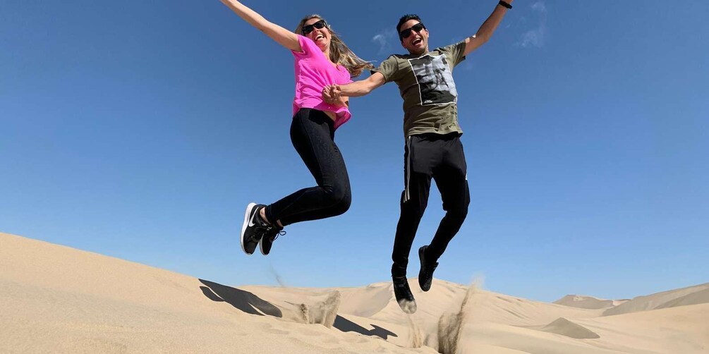 We will take rides in a 4X4 tubular transport and practice sandboarding in the Huacachina desert, where you will enjoy an incredible extreme adrenaline rush. The driver will stop the machine to give you some important techniques to be able to slide with the boards, once down, the tubular will go for you and continue again practising on different dunes and take spectacular shots.