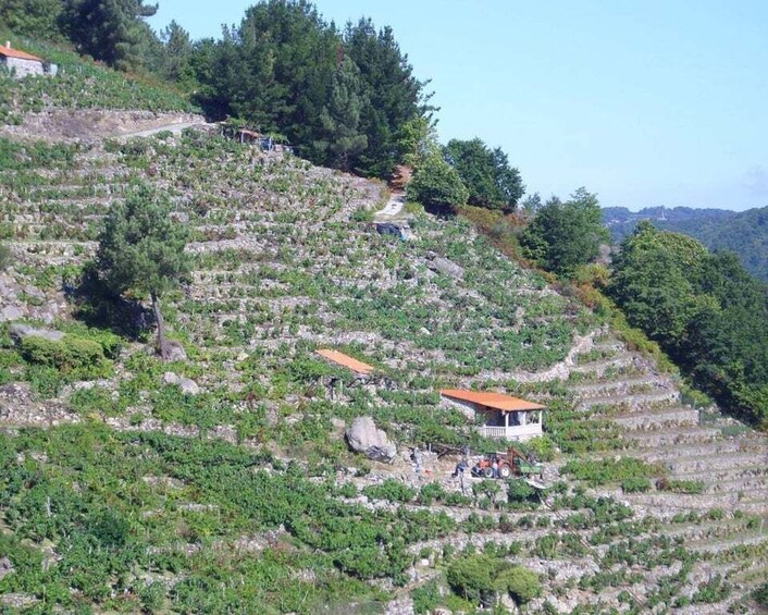 Wine-growing area with D.O. Ribeira Sacra, the main grape that we can taste is mencia, but also godello, cultivated in terraces next to the Miño and Sil rivers, among spectacular views of the river.