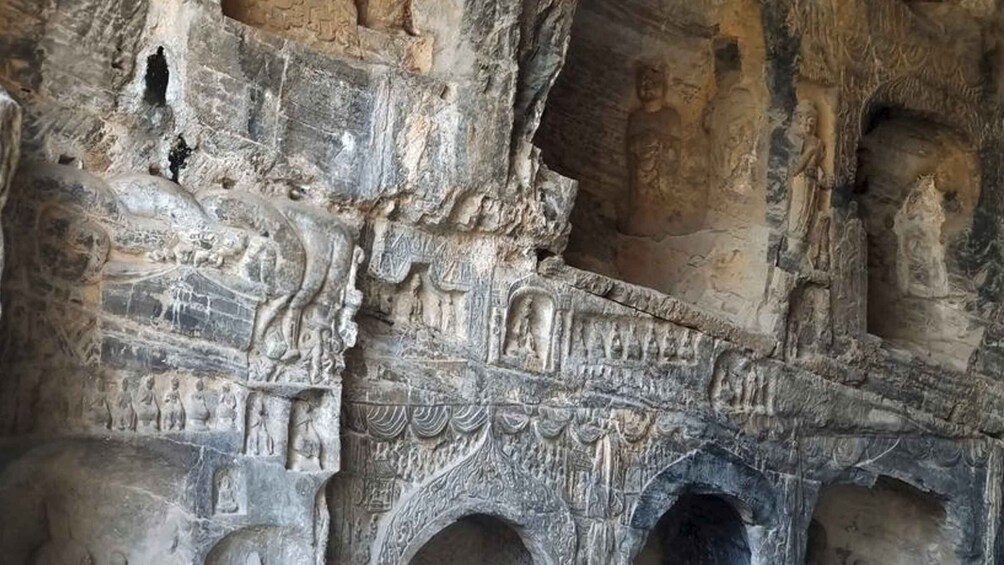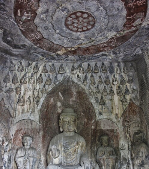 Longmen grottoes:The construction of the Longmen Grottoes first commenced during the reign of Emperor Xiaowen of the Northern Wei Dynasty, around 493 AD. The project continued through successive dynasties, including the Eastern Wei, Western Wei, Northern Qi, Sui and Tang dynasties. Stretching approximately one kilometre from north to south, the grottoes presently house 2,345 caves and niches, over 100,000 statues, and more than 2,800 stone inscriptions. Renowned for their grand scale, exquisite craftsmanship and rich cultural content, the Longmen Grottoes stand as a treasure of Chinese grotto art and a vital heritage of human civilisation.