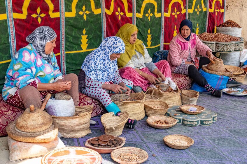 Your next stop, an optional experience, is a visit to a women-run argan cooperative, where you will learn about the traditional methods used to produce argan oil, an essential ingredient for both culinary and cosmetic purposes. You will be able to discover how the argan nuts are sustainably sourced and witness the local women’s craftsmanship. This visit also highlights the cooperative’s role in empowering women and supporting their communities.