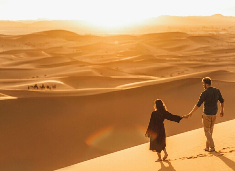 Enjoy stays at upscale riads and desert camps, coupled with exciting atv quad rides, camel treks, and sandboarding. This all-inclusive three-day tour also provides meals and private transport for a comprehensive desert journey.