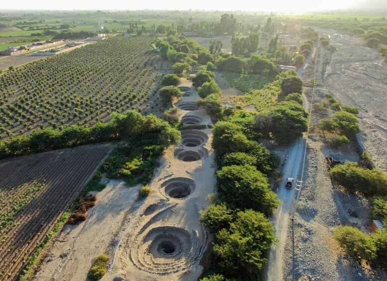 Our tour of Nazca's ancient wonders starts with a visit to the Cantalloc Aqueducts. You'll see the clever system of underground channels that the Nazca people built to get water in the dry desert. Our guides will explain how they were made and why they are important.
