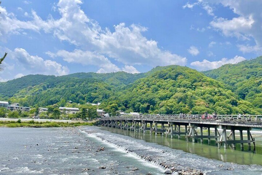 Conclude in Arashiyama, crossing the iconic Togetsukyo Bridge and strolling through the serene Bamboo Grove.