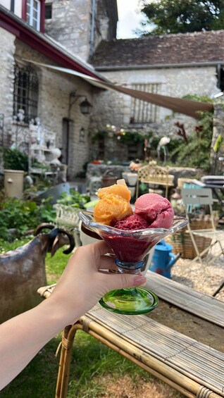 Explore the historic walled city, an authentic example of a medieval fair town in Champagne. Walk through narrow streets, listen to old legends, savour a local cheese and wine during the tasting in a medieval cave. Visit charming shops selling products made from the famous Provins roses, including perfume, soap, cream, wine, syrup, pastries, jams, and tea.