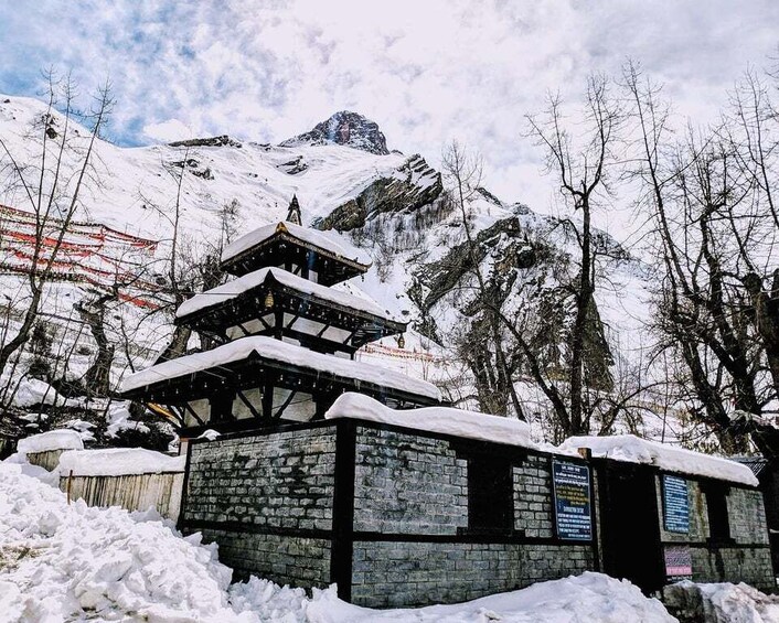Muktinath is a sacred pilgrimage site for both Hindus and Buddhists. It lies at an altitude of approximately 3,800 metres (12,467 feet) in the Mustang regioThe temple is a small pagoda-style structure with 108 water spouts and a natural gas flame that is believed to have been burning for centuries. Nearby, there is also a Buddhist monastery, adding to the spiritual significance of the area