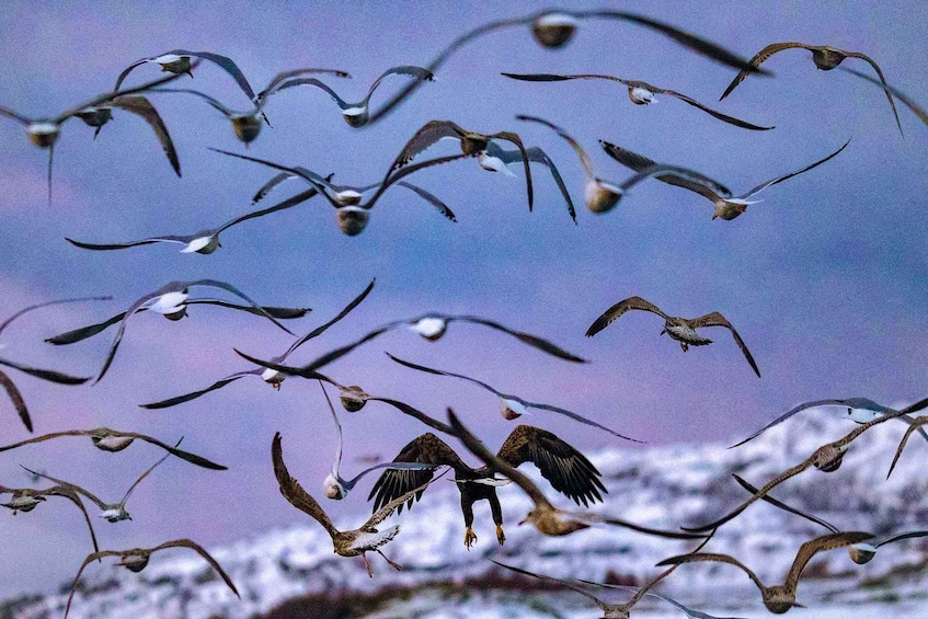 Meet at the Scandic Ishavshotel in Tromso bright and early. From here, drive for 3.5 hours to Skjervoy to meet your guide. Once in Skjervoy, receive a warm flotation suit before getting into the RIB.