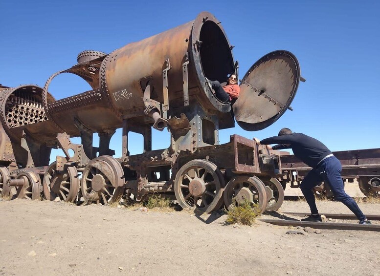 By 4x4 car, be picked up from your hotel, visit the old train cemetery, the town of Colchani, see the salt processing plants, artisan shops, enjoy a local lunch and walk through the salt desert.
