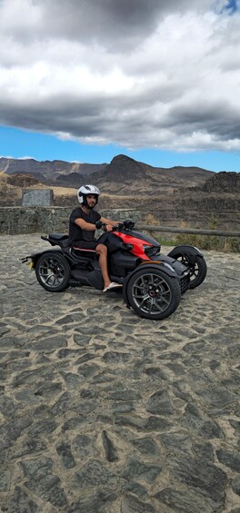 Experience the thrill of exploring the beautiful island of Gran Canaria on a Can-Am Ryker, a three-wheeled vehicle, on our route through Monte León, Ayagaures, and Fataga! During 3 hours, you will enjoy a fun-filled and adventurous journey while discovering breathtaking landscapes and charming places.