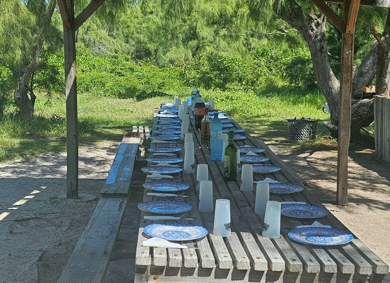 Our catamaran will drop the anchor near the islands up to where it can go as per the water depth. We shall then transport you in a dinghy to Ilot Gabriel for about more or less 45-60 minutes. Will then pick you up and bring you to the Ile Plate where we take care of you and serve you food and lunch. This is fabulous. We offer the chance not only to land on the island, but also eat on the island. Be in full rhythm and tuned to nature and green environment. Drinks also provided.
