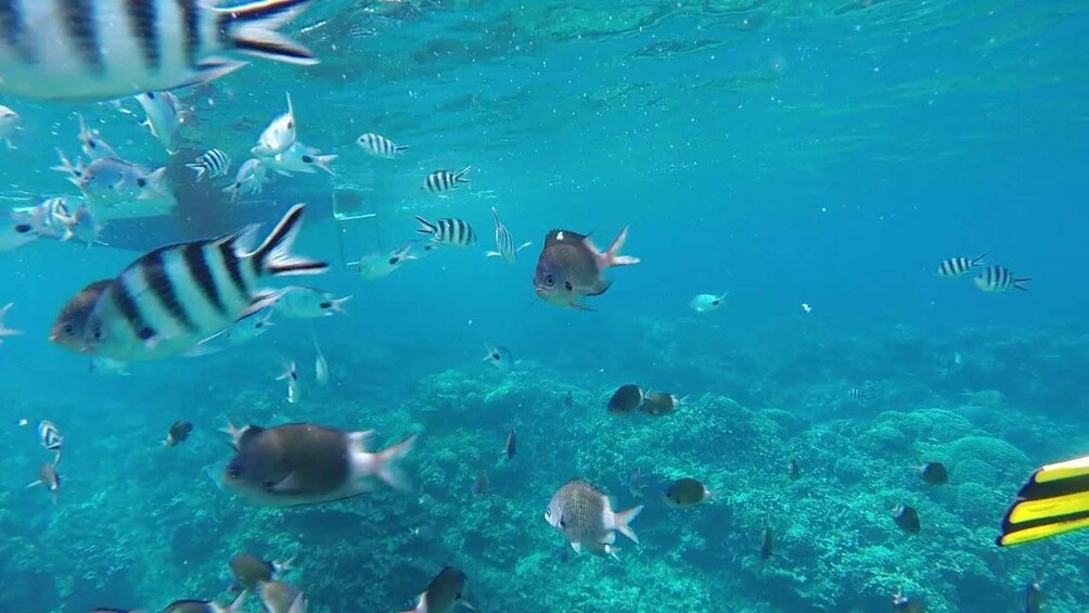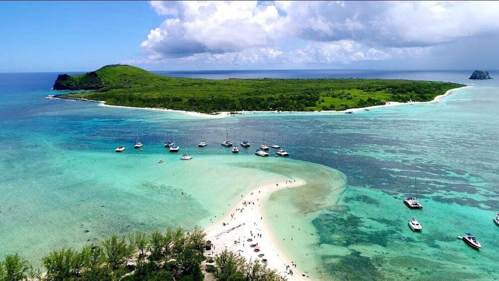 The cruise in itself is a great pleasure. Enjoy the different colours of the ocean. See what you cannot see from the ground. Spectacular sea views and views on the islands already before landing on the islands, Ile Plate and Ilot Gabriel.