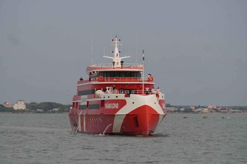 Depart from Ha Tien Ferry Port and arrive at Bai Vong Port on Phu Quoc Island. The crossing takes approximately 1 hour 10 minutes to 1.5 hours, depending on weather and sea conditions. During the trip, enjoy scenic sea views while relaxing in an air-conditioned cabin.