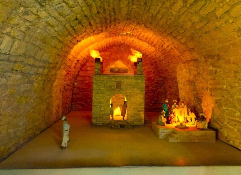 our first visit is the ancient Zoroastrian Ateshgah Temple, a former holy place for fire-worshippers. The pentagonal complex, which has a courtyard surrounded by cells for monks and a tetrapillar-altar in the middle. It was abandoned in the late 19th century, probably due to the dwindling of the Indian population in the area.