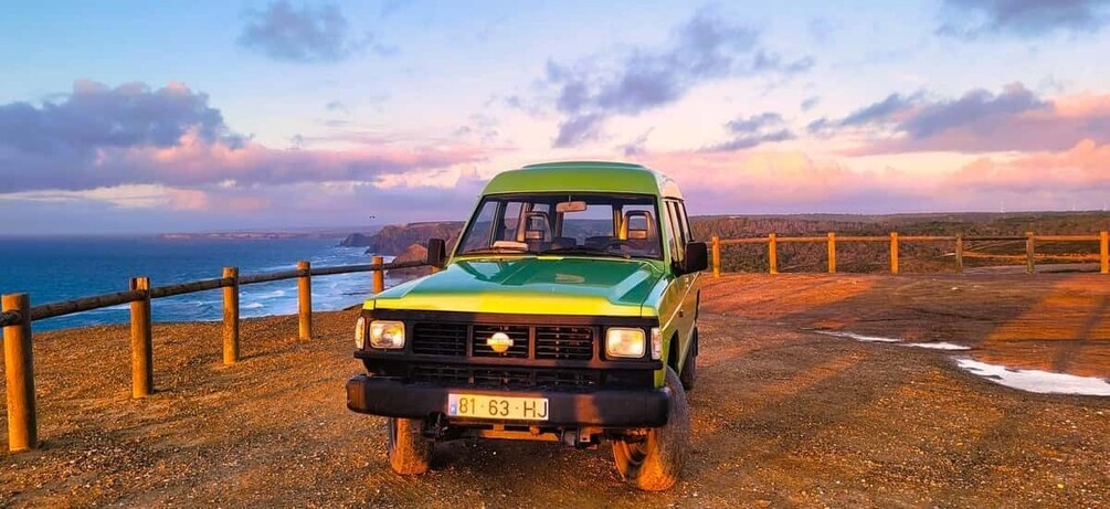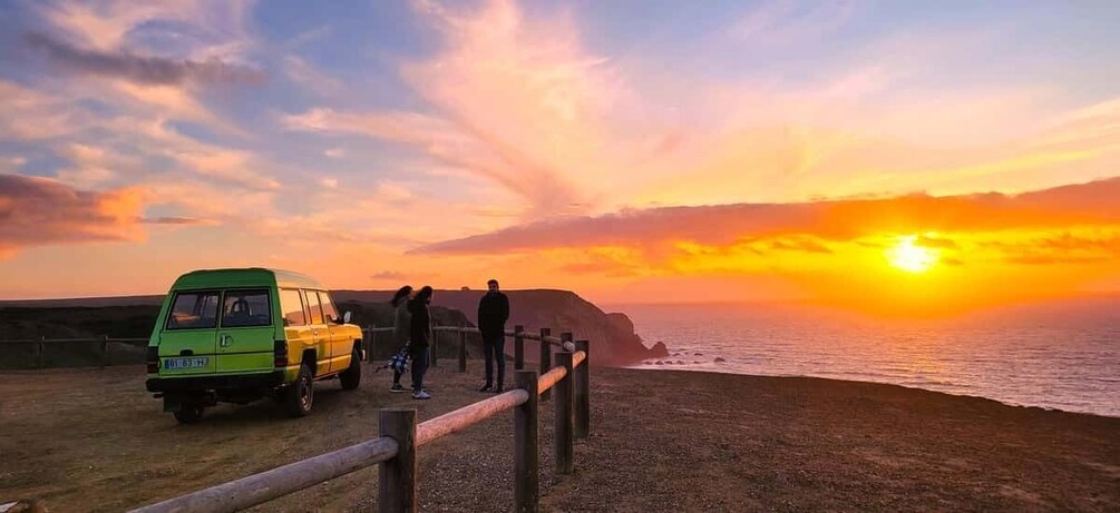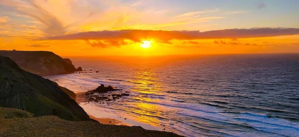 The tour finishes at Cordoama Beach or Ponta Ruiva, a secluded and pristine natural setting, ideal for relaxing and enjoying the sunset. Guests will be treated to a glass of Portuguese wine, accompanied by traditional bread with sausage, as they take in the breathtaking views of the sun setting over the horizon.