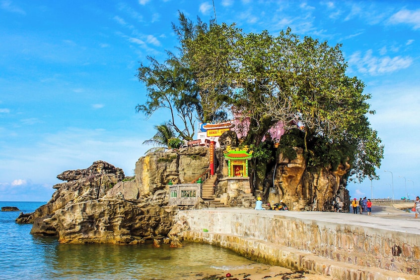 We then visit Suoi Tranh waterfall, one of the most impressive natural attractions on Phu Quoc Island. Although the waterfall is not large, it is still picturesque, and the scenic trail leading to it enhances the experience. Another famous speciality of Phu Quoc is Sim Wine; you will have the opportunity to sample some at the Sim Wine distillery during the penultimate part of our tour. For the final leg of our journey, we will wander through the atmospheric Duong Dong Night Market and admire the unique natural formation known as “Dinh Cau” Rock - Cau Temple. This temple was constructed to commemorate Thien Hau ,the Goddess of the Sea, whom locals believe provides protection for fishermen heading out to sea.